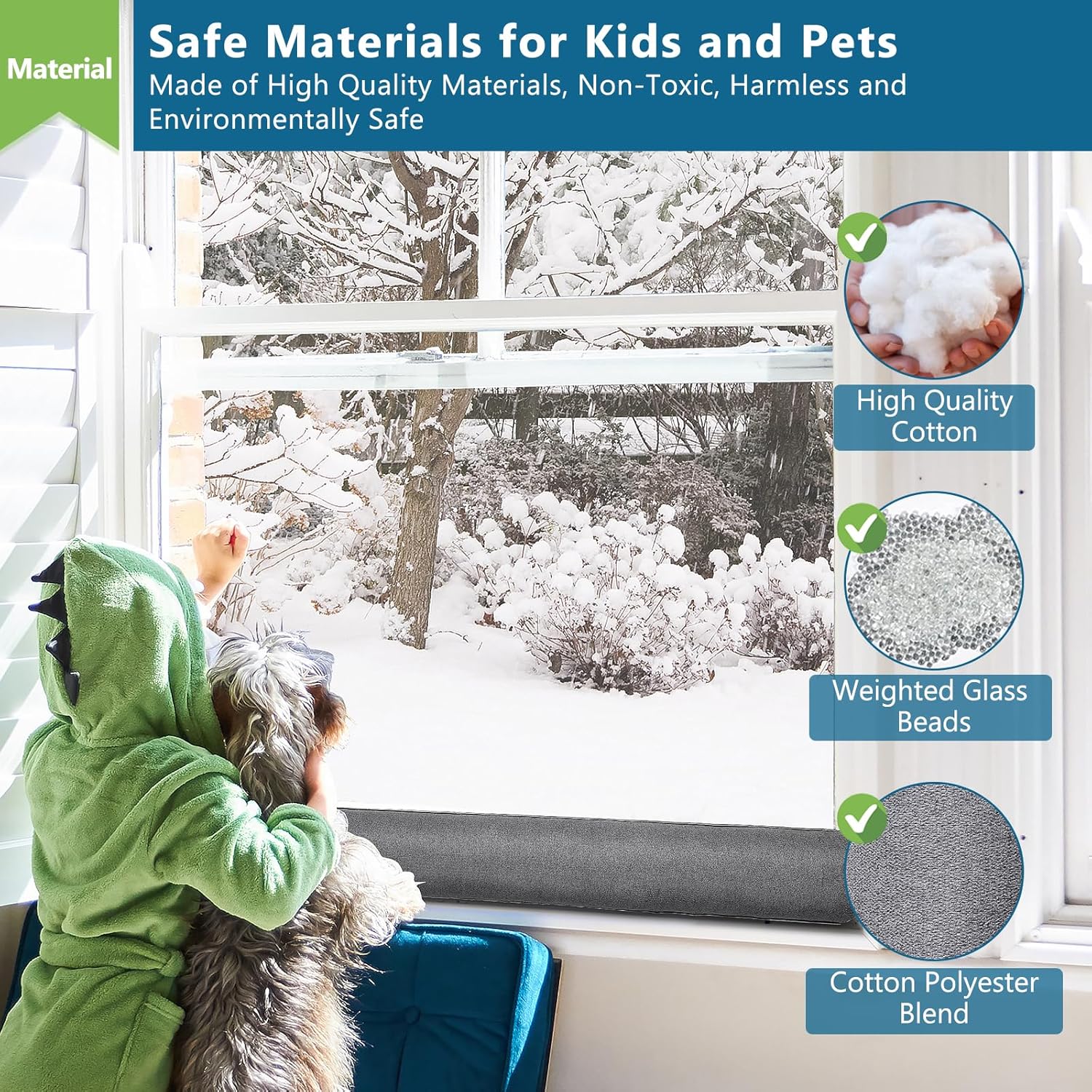 - FIT FOR KINDS OF FLOOR & WINDOWS: The door snakes are flexible enough to use on any type of floor and window. The soft texture and high abrasion resistance allow it to be used in a variety of situations without any scratches. By the way, please choose the right size draft stopper for your door size