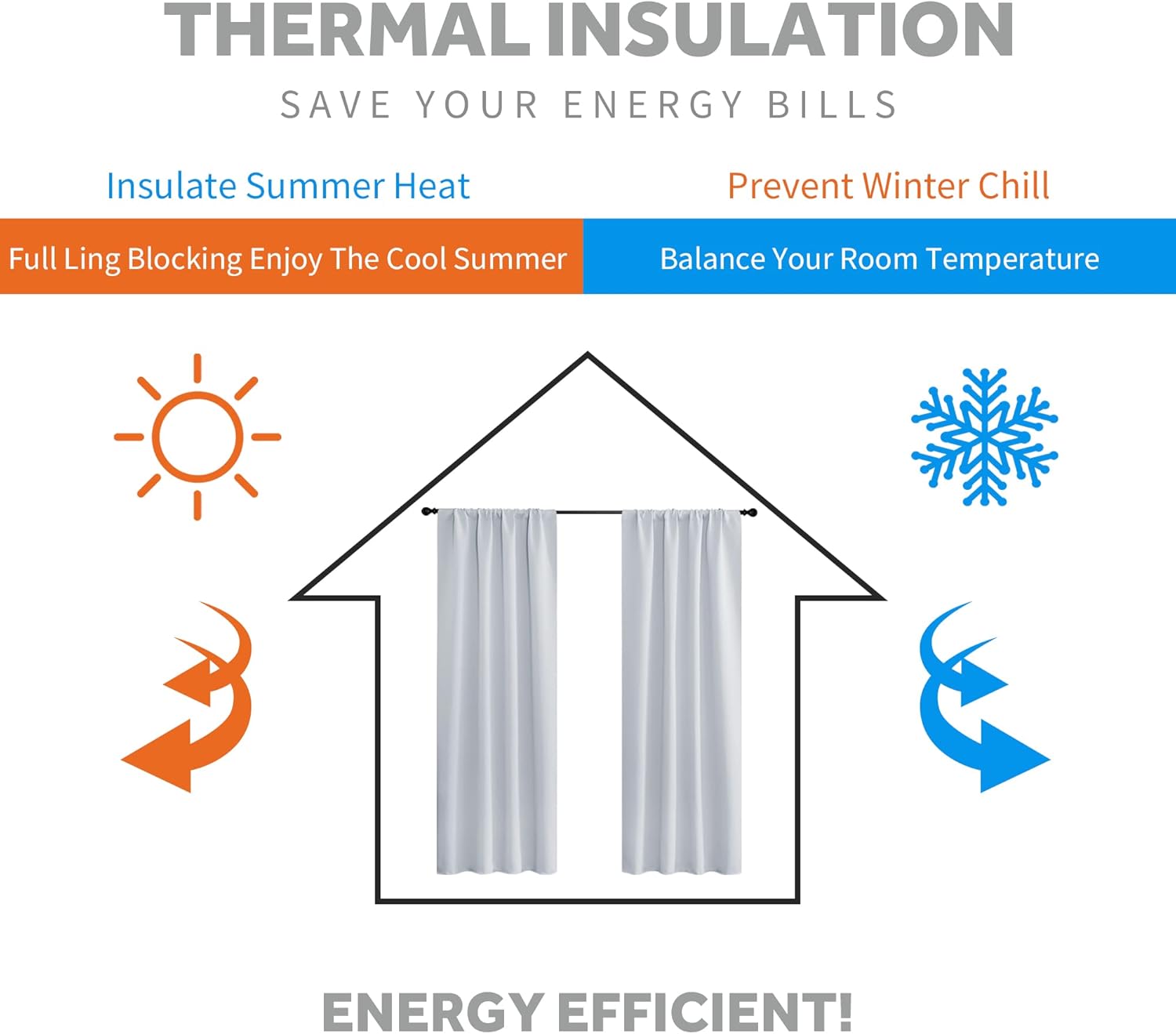 - ENERGY SMART - Curtains are work well on balance the temperature inside and outside by insulating summer heat and winter chill, so that these room darkening curtains can reduce the energy waste and save the daily bill effectively.