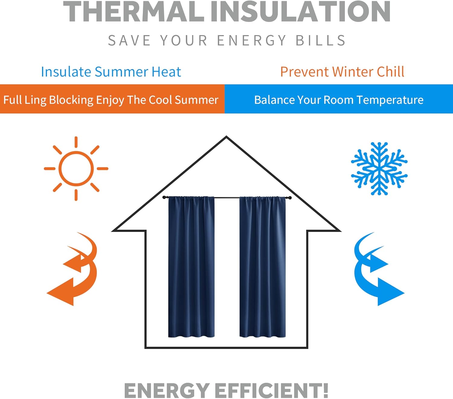 - ENERGY SMART - Curtains are work well on balance the temperature inside and outside by insulating summer heat and winter chill, so that these room darkening curtains can reduce the energy waste and save the daily bill effectively.