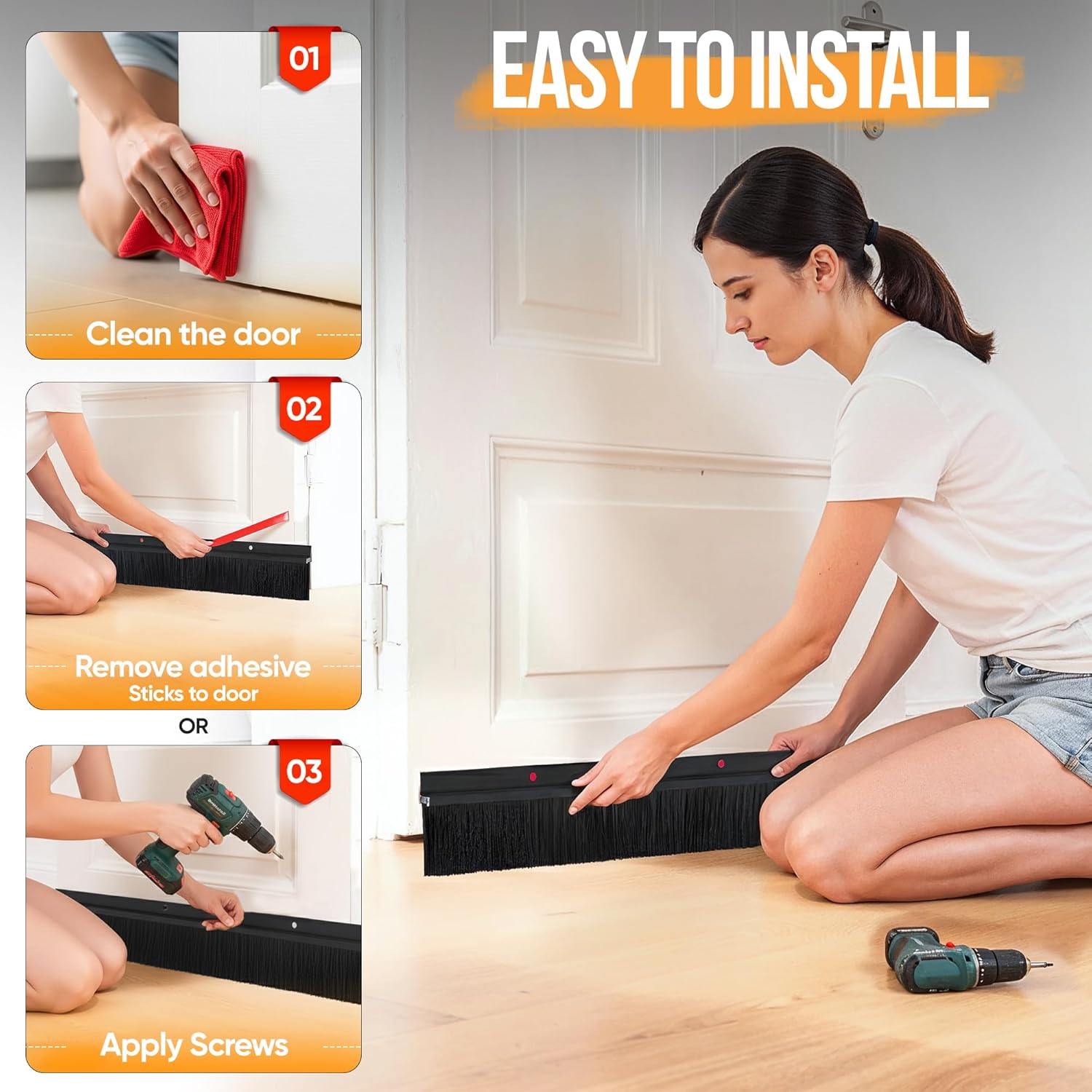 - šš¹š¼š°šøš šššš, ššš“š & š„š¼š±š²š»šš: Acts as a reliable door seal strip bottom and door gap filler bottom, blocking dust, insects, and allergens to keep your home clean and fresh. Can also be paired with excluder mesh for rodents for extra protection against pests.