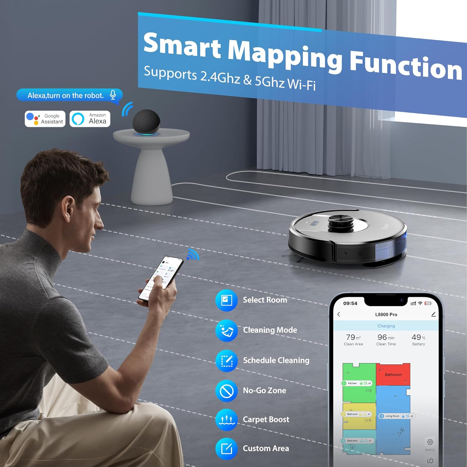 - New Hardware & Software Upgrades:Tikom 2025 New Vision L8000 Pro-New upgrades have been made to the breakpoint resume cleaning, custom cleaning, WI-FI connection, scheduled cleaning and other functions. Make your use more convenient and more proficient.Supports 2.4Ghz & 5Ghz WI-FI