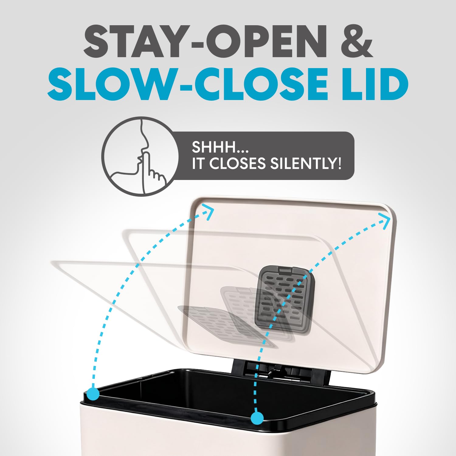 50 Liter / 13.2 Gallon Soft-Close, Smudge Resistant Trash Can with Foot Pedal and Built in Filter- White Color